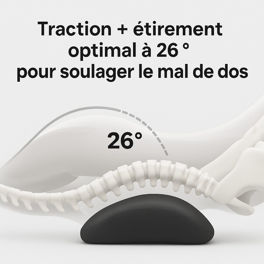 Inspiré des protocoles cliniques de traction‑lift, il décompresse la colonne, ré‑aligne les vertèbres et relance la micro‑circulation en seulement 15 minutes par jour grâce à trois actions complémentaires :